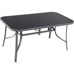 Table de jardin en acier - Plateau en verre - 150 x 90 x 72 cm - Supporte jusqu'à 180 kg - Argenté.