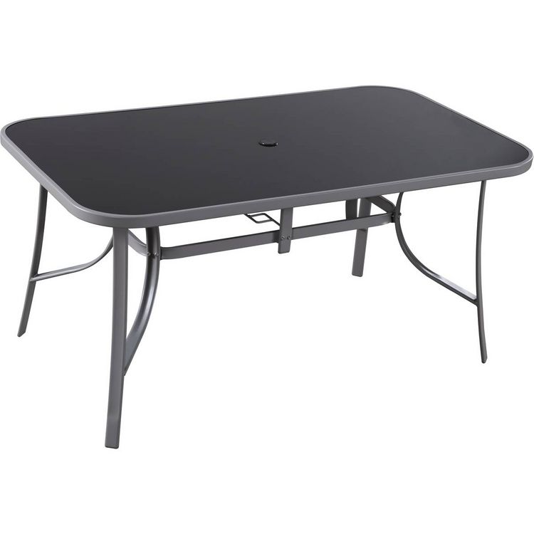 Table de jardin en acier - Plateau en verre - 150 x 90 x 72 cm - Supporte jusqu'à 180 kg - Argenté.Table de jardin Cordoba Cettetable de jardinen acier a un design de style industriel à votre patio, jardin ou salle à manger. Sonstyle moderneest idéale pour prendre unrepasen famille ou entre amis