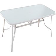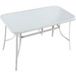 Table de jardin en acier - Plateau en verre - 180 x 90 x 72 cm - Supporte jusqu'à 180 kg - Blanc.