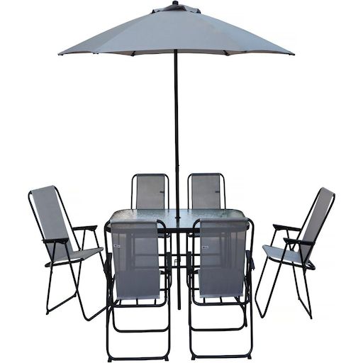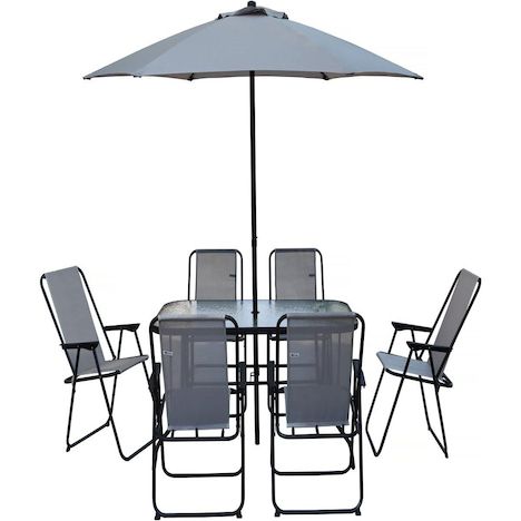 le + produit: Ensemble complet 6 places avec parasol inclus