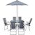 Table et chaises de jardin avec parasol en métal Convivia - 6 places - Gris clair