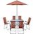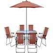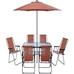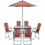 Ensemble table et chaises + parasol Convivia - 6 places - Dimensions chaises : 53 x 67 x 89 cm - Dimensions parasol : 180 x 180 x 220 cm - Dimensions table : 130 x 80 x 70 cm - Métal - Table avec verre trempé - Terracotta.