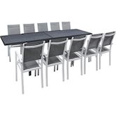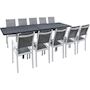 Table extensible et chaises de jardin en aluminium Lagos - 200/320 x 105 x 76 cm - 10 places - Gris foncé