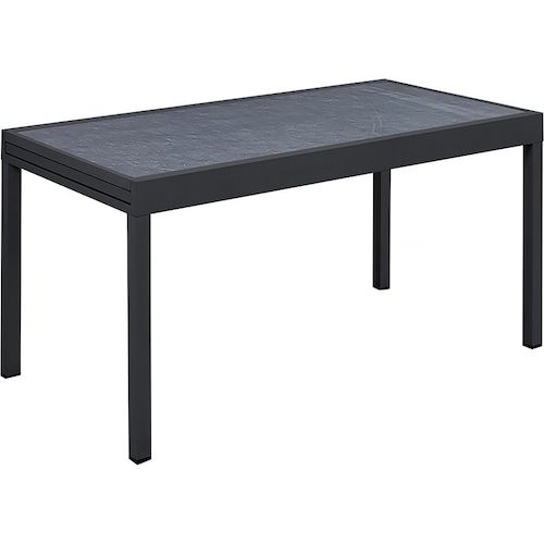 Table repas de jardin en aluminium extensible Lagos - Dimensions : 200/320 x 105 x 76 cm - Fonction extensible - Effet marbre - Traitement anti-UV et anti rouille - Poids : 51.2 kg - Métal - Noir.