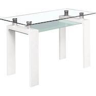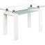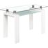 Table repas Eva - Blanc laqué - Dimensions : 150 x 80 x 75 cm - Idéale pour 6 convives - Plateau supérieur en verre trempé transparent - Pieds en MDF - Finition laqué.
