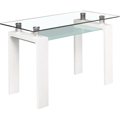Table repas Eva - Blanc laqué - Dimensions : 150 x 80 x 75 cm - Idéale pour 6 convives - Plateau supérieur en verre trempé transparent - Pieds en MDF - Finition laqué.Table repas Eva Sublimez vos repas ou vos soirées avec vos proches ou amis grâce à la table de repas Eva .Son design sobre et élé
