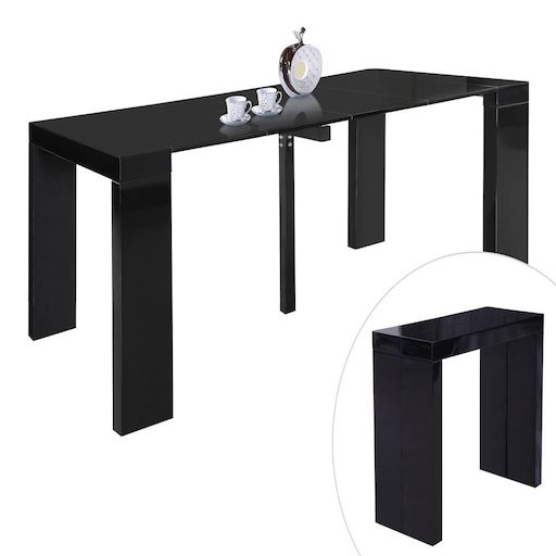 Descriptif : - Pratique et prend peu de place - Table très fonctionnelle - Parfaite pour les petits espaces ! - Design altique - Possibilité d'augmenter la capacité d'accueil + 160 cm - Structure en MDF - Finition effet brillant.