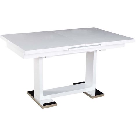 Et si vous disposez de peu d'espace, rangez sa rallonge et gagnez de la place en un rien de temps !Descriptif : Table en MDF Table extensible Élégante finition effet brillant Style sobre et chic A harmoniser avec une décoration moderne Montage facile.
