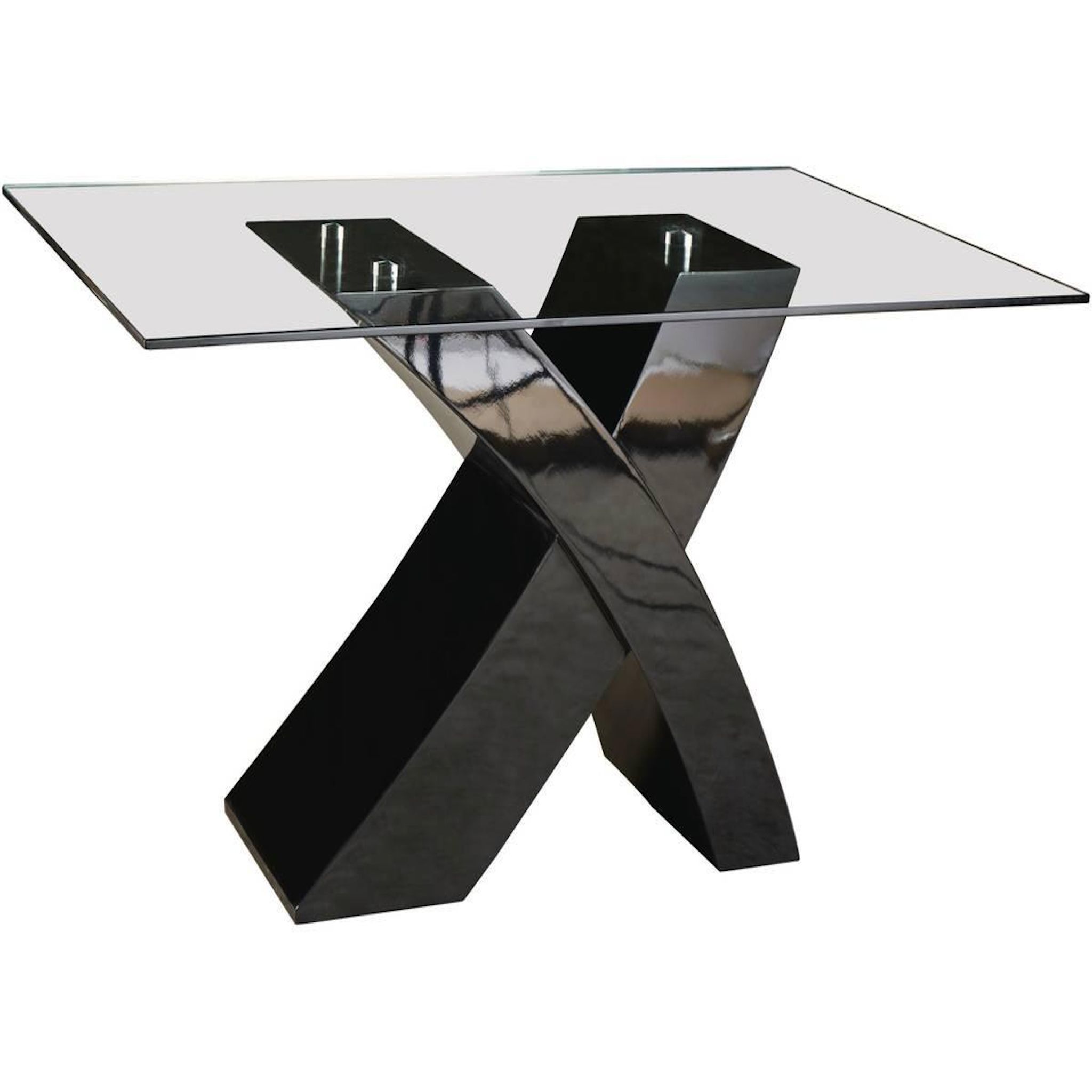 Table repas rectangulaire Mona - Dimensions : 150 x 90 x 74 cm - MDF noir laqué - Verre d'épaisseur 12 mm - Pieds en X - Le prix concerne uniquement la table.