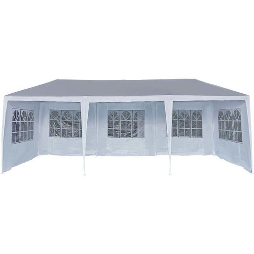 Tente de réception Carolina 9 Vous souhaitez organiser un anniversaire, fêter l'obtention d'un diplôme ou toute sorte d'événement qu'ils soient privés ou professionnels ? La tente Carolina 9 est faite pour vous !Alliant fonctionnel et esthétique, ce modèle en polyéthylène vous offre des dimensions généreuses et vous permettra d'accueillir tous vos invités lors de vos réceptions. Ses caractéristiques font de la tente Carolina 9 une tente polyvalente qui peut être utilisé lors de diverses occasions : mariages, anniversaires, foires, stand de marchés, etc.Ce modèle a été pensé pour être le plus facile possible à installer. Grâce à son poids réduit, la tente Carolina 9 est aussi très facile à transporter.Elle saura offrir à vos réceptions une ambiance moderne et élégante. Ses 6 fenêtres transparentes en formes d'ogives offriront à vos invités un éclairage naturel.Disposez la tente Carolina 9 dans votre jardin ou sur votre terrasse et profitez de vos événements de la meilleure des manières ! Tente de réception Carolina 9 - 24.39 m² - Dimensions extérieures : 8.56 x 2.85 x 2.6 m - Dimensions intérieures : 8.56 x 2.85 x 1.98 m - Blanc - Structure : acier - Matière : polyéthylène (toit, panneaux, fenêtres) - Densité de la toile : 90 g/m² - 2 portes (dimensions : 285 x 195 cm) - 6 fenêtres transparentes (dimensions : 176 x 102 cm) - Résistant à l'eau - Anti-rouille .Descriptif: Tente de réception Carolina 9 - 24.39 m²