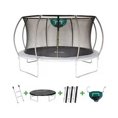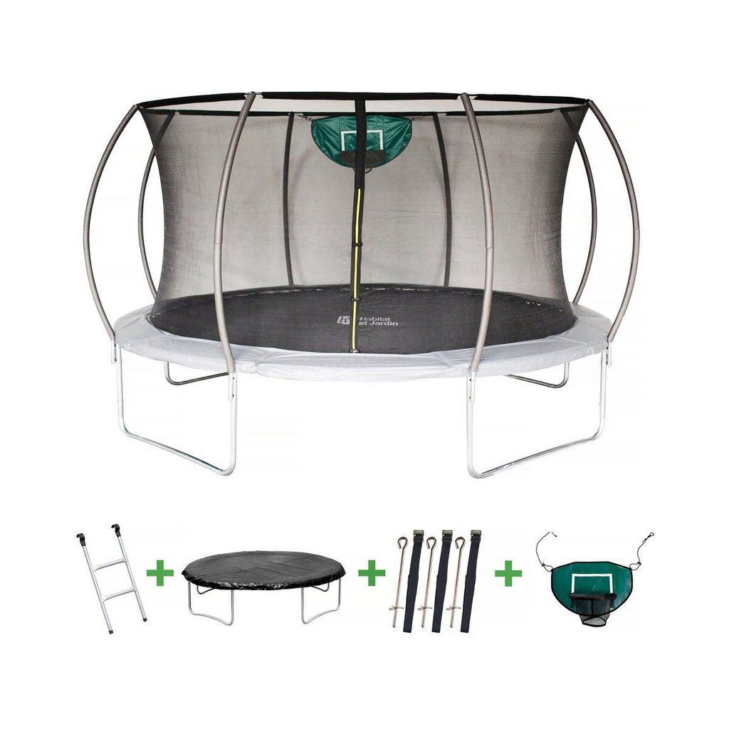 Trampoline avec filet intérieur Jumper - Ø 4,25 m - Hauteur du trampoline : 261 cm - Hauteur de saut : 81 cm - Hauteur du filet de sécurité : 180 cm - Résistant aux UV - Traitement antirouille - Poids maximum supporté : 150 kg - Gris.