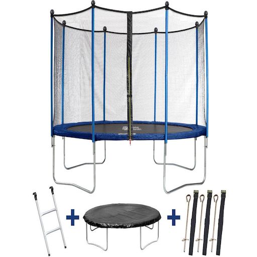Trampoline Happy - Ø 3.65 m m - Avec filet + échelle + couverture + kit d'ancrage