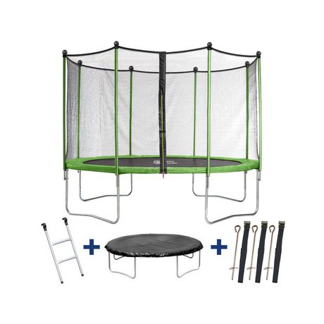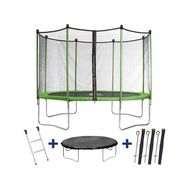 Trampoline Yoopi Ø 3.65 m - Filet de protection + Echelle + Couverture + Kit d'ancrage - Coloris Vert.