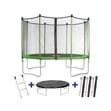 Trampoline Yoopi Ø 3.65 m - Filet de protection + Echelle + Couverture + Kit d'ancrage - Coloris Vert.Trampoline Yoopi Trampoline 3.65 m + filet de protection + échelle, cadeau idéal pour vos enfants en toute sécurité Trampoline économique, de qualité exceptionnelle et montage facile Conforme
