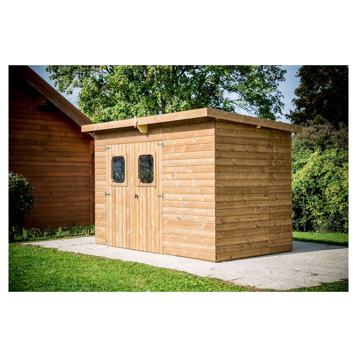 Cet abri de jardin en bois massif traité très haute température vous permettra de ranger votre jardin grâce à sa surface intérieure de 5,2 m². Les surfaces extérieures de cet abri (bardage, parois, pignons, portes, planches de rive) sont fabriquées en épicéa traité très haute température à 215°C sans aucun ajout de produit de synthèse. Ce traitement permet une plus grande résistance et durabilité du bois. L'abri de jardin est équipé d'une double porte pour faciliter le rangement de vos outils, votre mobilier... Il est doté d'un toit monopente en plaques ondulées Onduline. Livré avec kit soubassement. A monter soi-même