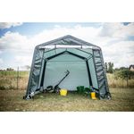 Cet abri de jardin en toile grise offre une surface de 9.30 m², idéale pour protéger des véhicules ou du gros matériel à moindre coût. La légèreté du chalet lui permet d'être transporté très facilement. Le cadre est en acier époxy, les tubes de la structure mesurent 34mm de diamètre. La house est en polyéthylène renforcé de 195gr/m² Dimensions : intérieur 3m x 3m, hauteur 2,44m.