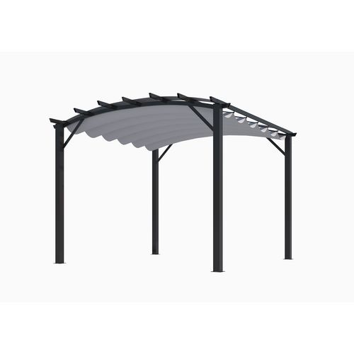 Habrita PER3433GG La pergola arche HABRITA PER 3433 GG séduit par ses formes modernes, tendances et fluides. Elle offre un large espace d'accueil de 3,30 x 3,40 m, mariage d?une structure anthracite et d?une toile grise. Pergola autoportante, sa toile coulissante réglable selon vos désirs grâce à se