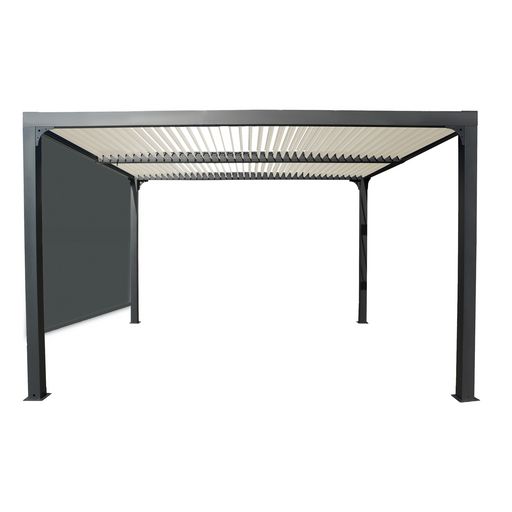 Pergola bioclimatique Autoportée avec rideau manuel - Aluminium - Gris - 10,8m²