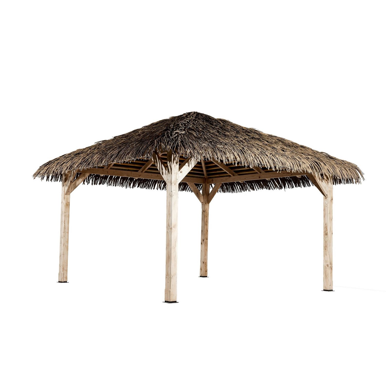 Pool house fabriqué en sapin du Nord contrecolléCaractéristiques techniques :Dimensions hors tout 3.94 x 3.94 mHauteur de passage : 205 cm / hauteur totale : 327 cmDimensions extérieures poteaux 3.48 x 3.48 mLargeur de passage : 324 x 324 cmSurface extérieure hors tout 15,52 m2Livré avec 4 poteaux 1