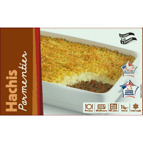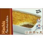 Ingrédients : Eau, viande bovine 9% (origine : France), viande de porc 9% (origine : France), flocons de pommes de terre, crème fraîche, oignon, carotte, double concentré de tomates, amidon de maïs, purée de céleri, pulpes de tomates au jus (tomates, jus de tomates), lait écrémé en poudre, oignon déshydraté, chapelure (dont blé), sel, emmental, persil, ail, huiles végétales (huile de tournesol et/ou colza), paprika, muscade, curcuma, laurier, thym, poivre, romarin.