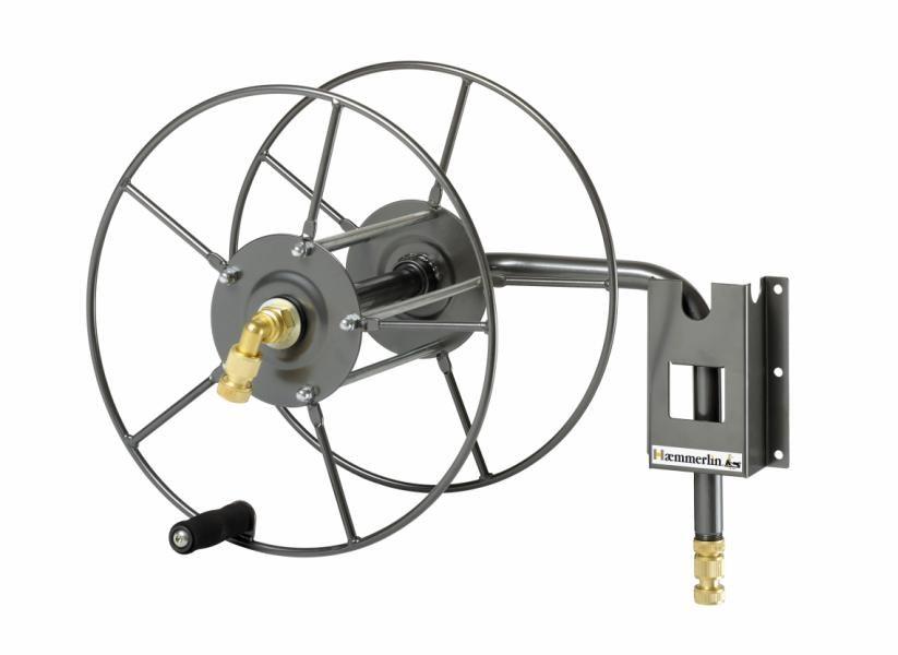 Ce dévidoir mural est métallique et convient à des tuyaux d'arrosage 50 m Ø, intérieur 15 mm.