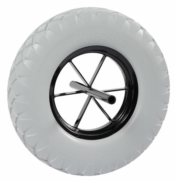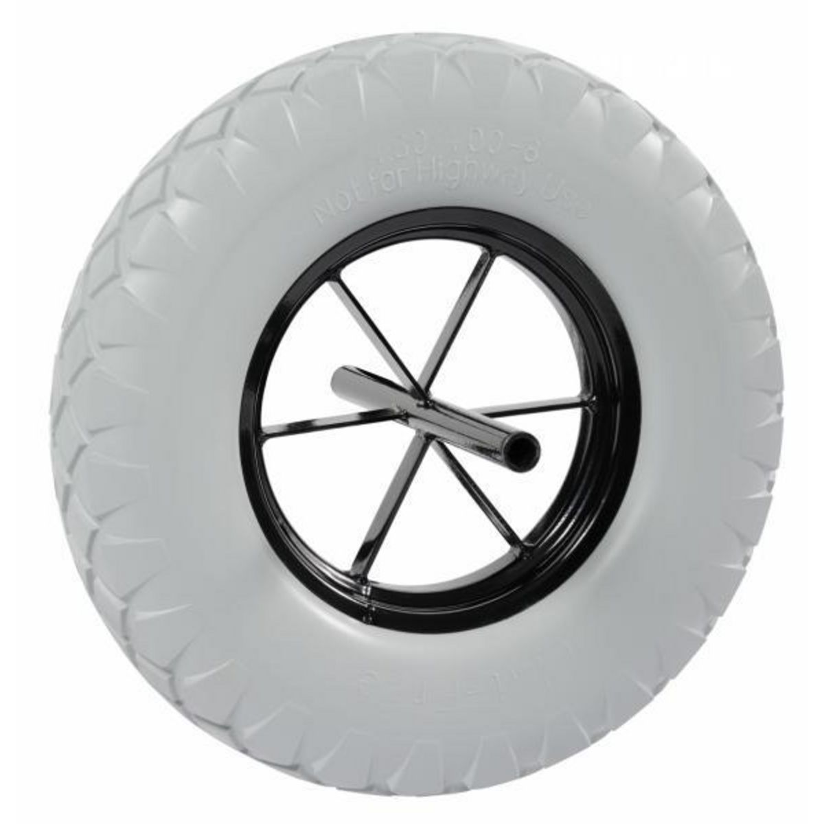 Le confort d'une roue gonflée sans risque de crevaison !Roue increvable de rechange Ø 400 mm, jante métal à rayons.Axe Ø 20 mm, longueur 265 mmLivrée avec coussinets plastiquesPoids : 4 kgCompatible avec les brouettes : Prems, Bati 90, Bati Plus 100 (ex EXO 141 et 441, 1018 et 1021), Cargo Prems, Pr