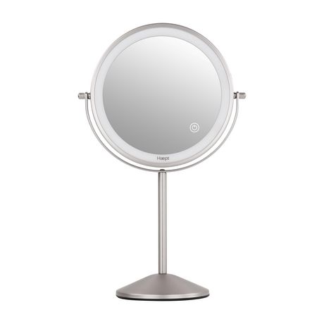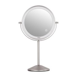 | Spécificités | Miroir sur pied double-face : X1 et X10. LED tactile, luminosité réglable avec 3 tons (cinéma, chaud, naturel). Finition nickel brossé. Sans fil, compact, idéal pour maquillage, épilation, lentilles. Batterie rechargeable USB-C. Ø 16,5 à 20 cm, hauteur 38 cm | |