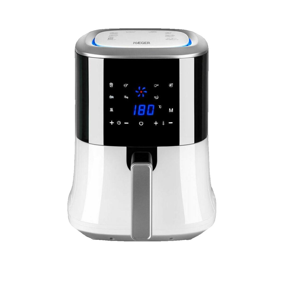 Découvrez la friteuse sans huile numérique Haeger Aero Fryer. Elle offre une capacité de 2,2 litres, idéale pour cuisiner pour toute la famille. Dispose de huit programmes de cuisson et d'un contrôle digital qui permet de préparer des plats sains et délicieux rapidement. Son design moderne blanc s'a