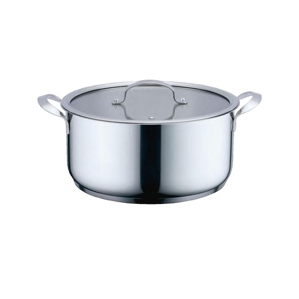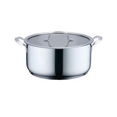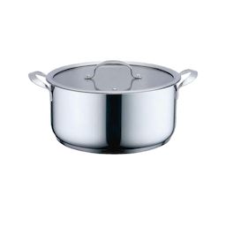 La Haeger PA-28H.011A est une olla sopera moderne fabriquée en acier inoxydable, d'une capacité de 6,5 litres. Elle est idéale pour préparer des soupes et divers plats mijotés. Cette cocotte convient à toutes les sources de chaleur, y compris gaz, induction, électrique et halogène. Son couvercle en