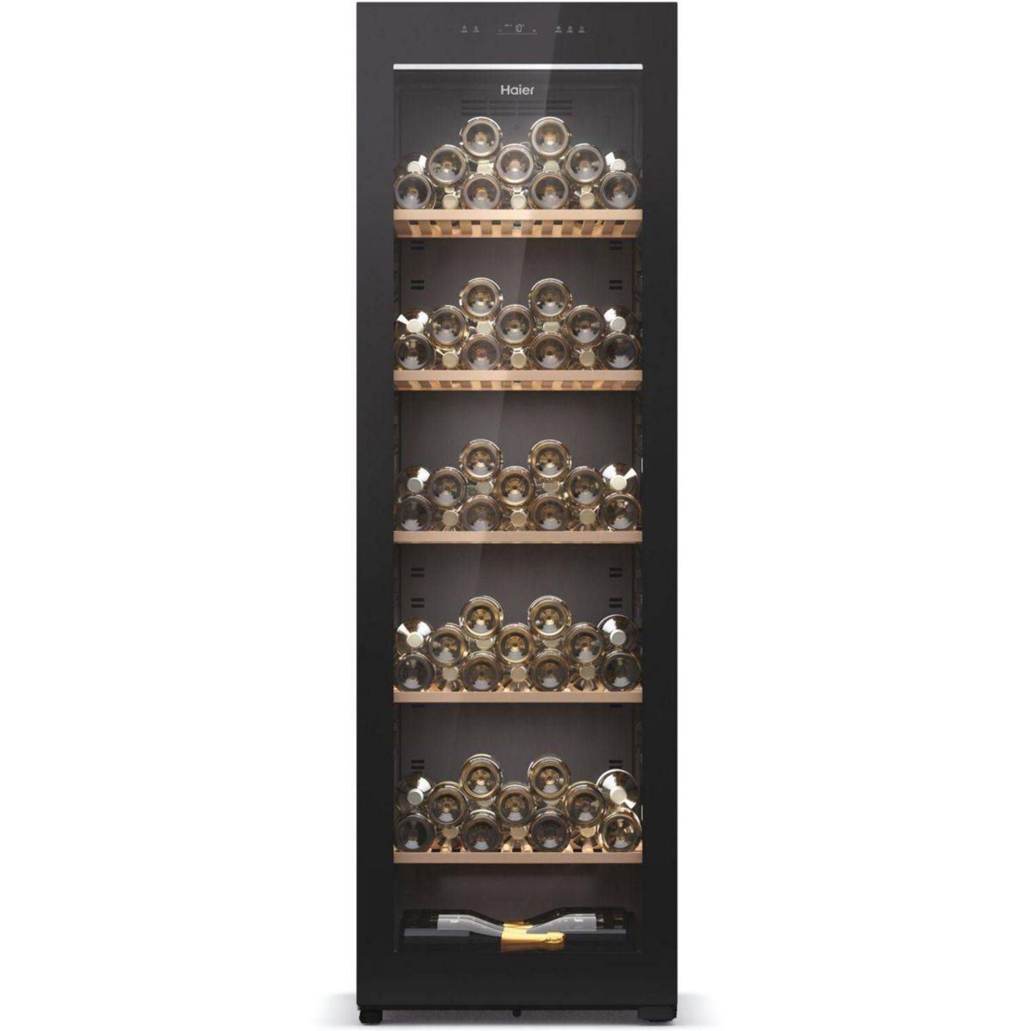 | Le saviez-vous ? | La capacité annoncée est la capacité maximale mesurée selon le standard européen EN62552. Ce standard est calculé avec des bouteilles 75cl type bordeaux tradition. La capacité annoncée correspond donc au nombre de bouteilles de bordeaux possibles avec le nombre de clayettes fournies dans la cave. | |