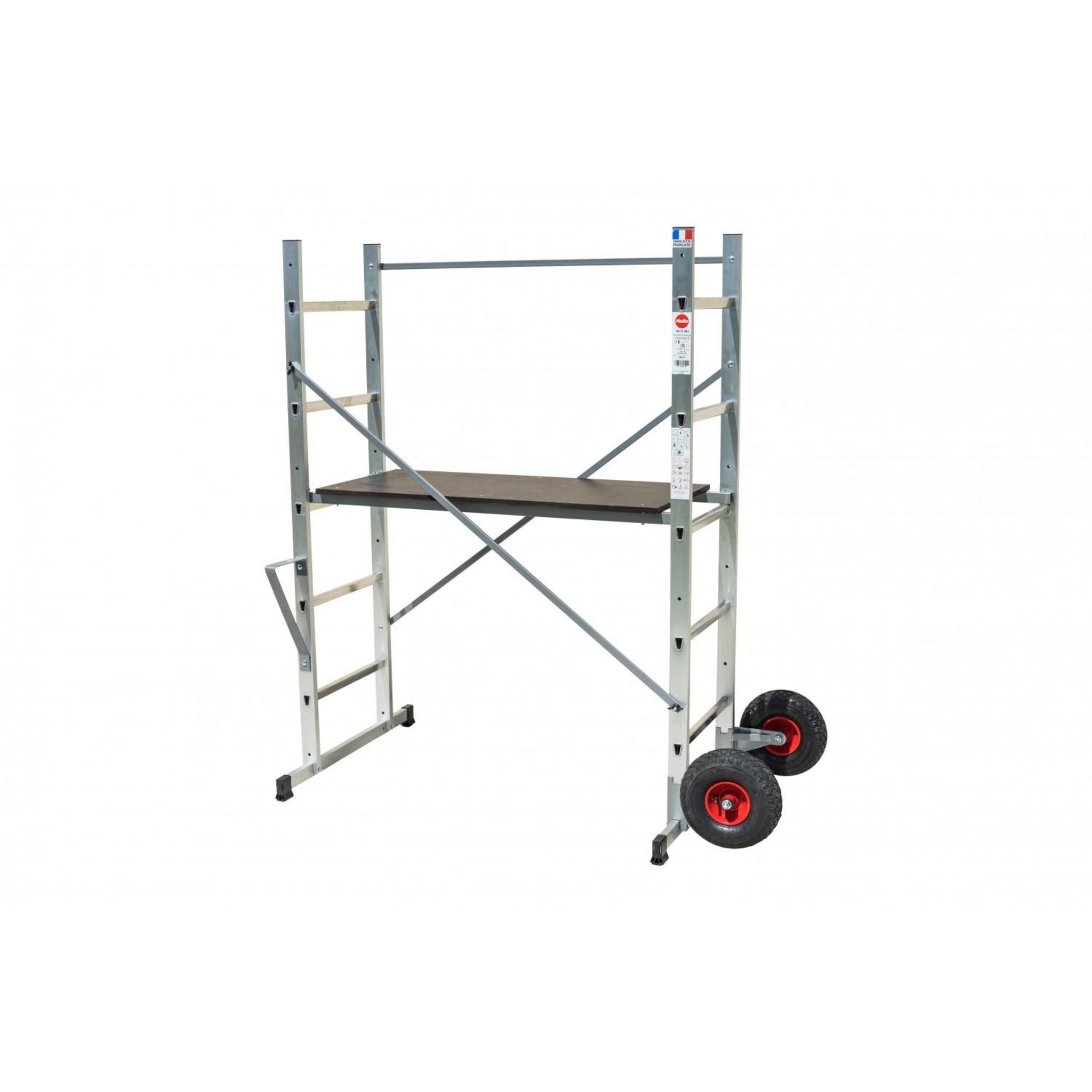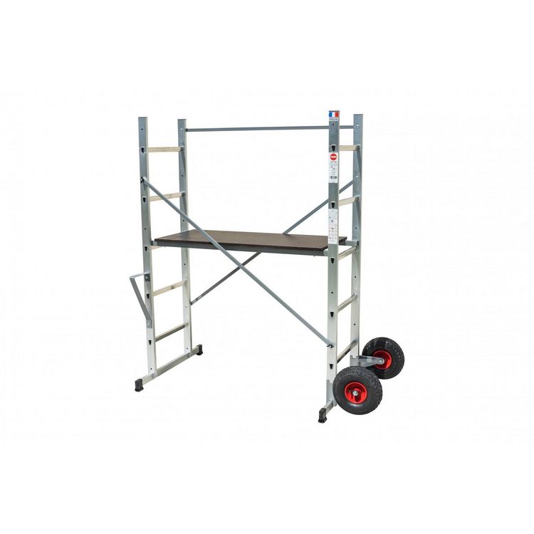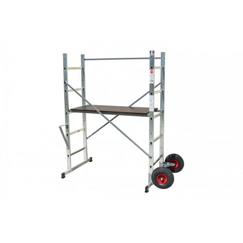 Echafaudage avec roues tout-terrain pour une utilisation simple et confortable sur les sols de jardin par exemple.