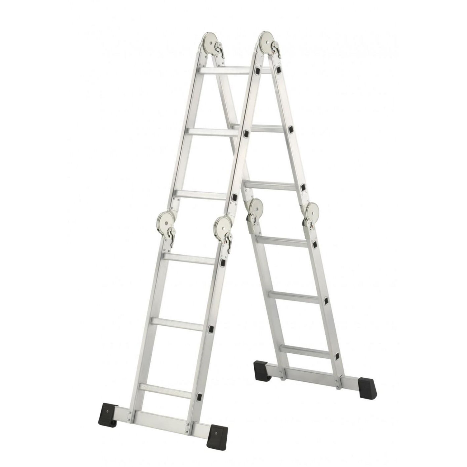 Echelle articulée simple et rapide d'utilisation - mutlipositions Utilisable en échelle simple / double en débord de toit avec plateforme pour une utilisation en plateforme de travail Avec 2 bases rapportées pour plus de stabilité Conforme aux exigences de la Norme EN 131 Garantie 2 ans