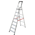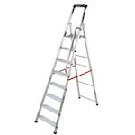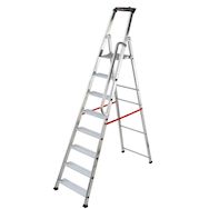 Avantages et points forts de l'escabeau 8 marches Alu Pro PolyvalenceL'escabeau Hailo Alu Pro 8 marches dispose d'une grande tablette porte-outils avec crochet porte-seau et logement de visseuse pour un confort de travail inégalé.