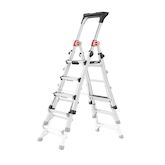 L'escabeau TL100 est télescopique et peut être utilisé de 3 à 5 marches avec une hauteur maximale de travail de 3m10. Il peut être utilisé en dénivelé et dans les escaliers. Sa conception astucieuse offre une grande polyvalence à l'escabeau qui répond à de nombreux besoins lors de vos travaux. Les larges marches, la plateforme antidérapante et la tablette porte-outils offrent une stabilité maximale et un confort de travail inégalé.