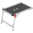TP1 peut etre utilise comme plate-forme de travail ou comme base pour toutes les marches pliantes et escabeaux Hailo jusqu'a 4 marches. Une surface de travail antiderapante integree dans un systeme de cadre en aluminium robuste offre une assise solide. La plate-forme d'escalier peut etre utilisee sur la plupart des escaliers droits et en spirale. Sa longueur et ses rails et pieds telescopiques reglables en hauteur permettent un ajustement flexible a la hauteur et a la profondeur de la marche. De plus, elle est dotee d'une semelle a adherence souple pour une stabilite optimale et une securite antiderapante sur une variete de surfaces. Grace au niveau a bulle integre, la plate-forme sera toujours dans une position horizontale securisee.