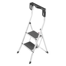 Marchepied pliable 2 marches. Dispose d'un garde-corps extra haut (63 cm) avec coques de rangement ergonomique et des aimants fixés lattéralement. Il dispose également de marches larges (20 cm) avec tapis antidérapants, d'embouts plastiques antidérapants et d'une sécurité grâce à son mécanisme de blocage