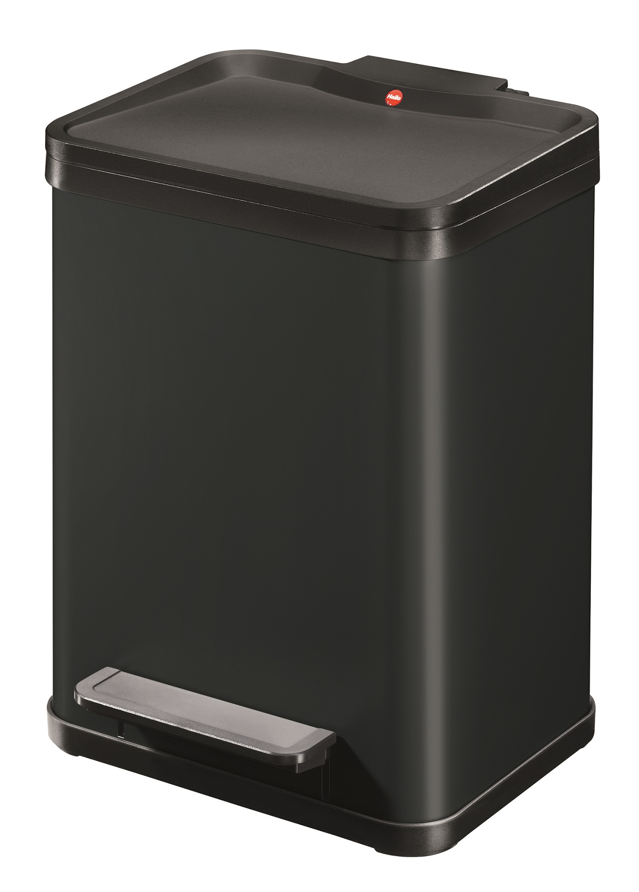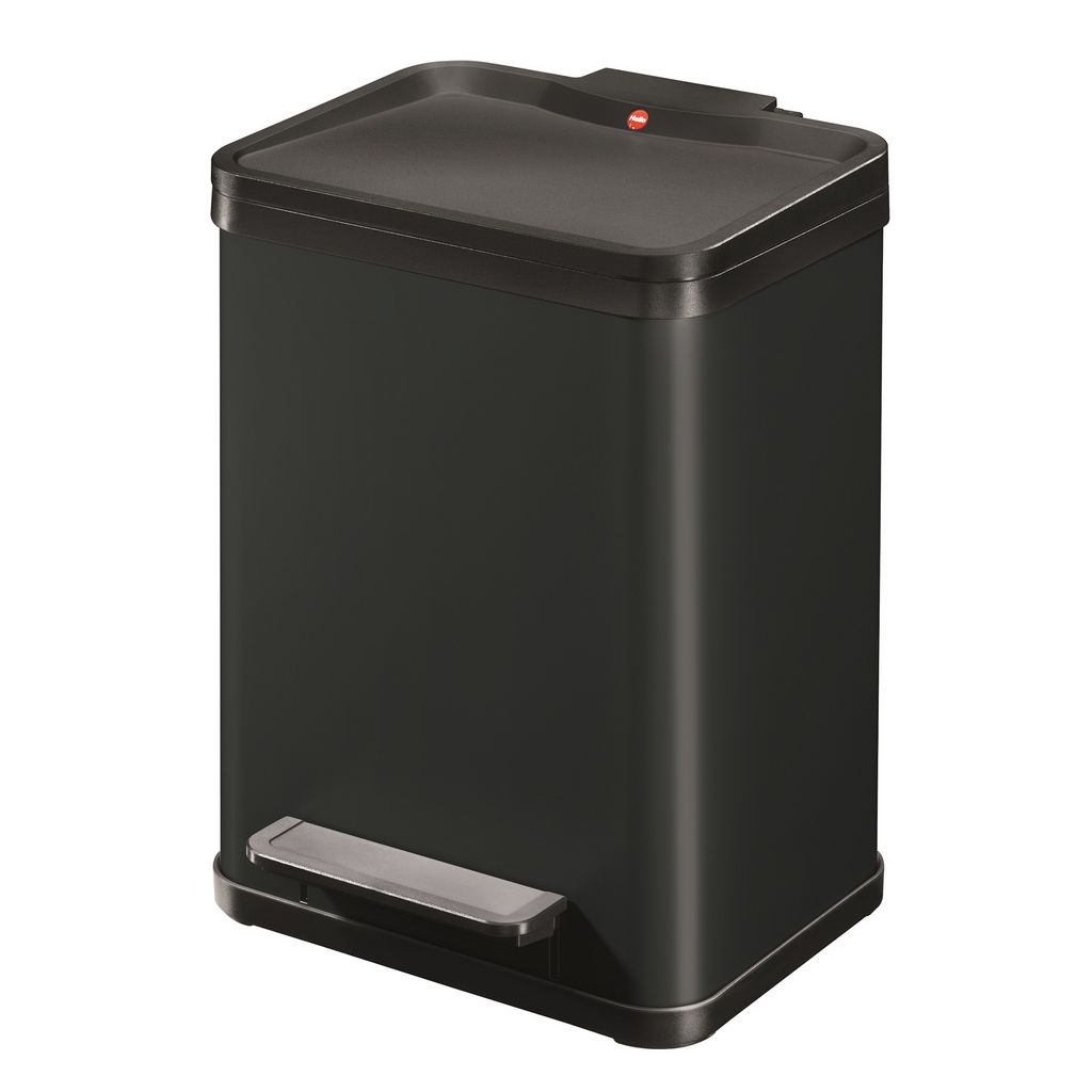 Découvrez cette poubelle à pédale rectangulaire HAILO en acier inoxydable ou en tôle d'acier traitée Noir Mat, d'une capacité de 17L. Elle dispose d'un seau intérieur en plastique amovible noir avec anse ainsi que d'un couvercle en plastique noir de grande qualité doté du mécanisme "Soft Close" pour une fermeture silencieuse. Sa large pédale en plastique noir est ergonomique et permet un certain confort d'utilisation. Mécanisme de pédale à l'intérieur.