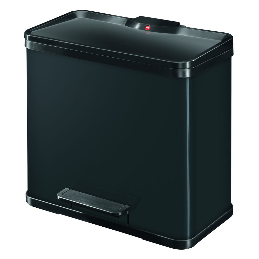 Découvrez cette poubelle à pédale rectangulaire pour tri sélectif HAILO en acier inoxydable ou tôle d'acier traitée Noir, d'une capacité de 17 + 9L. Elle dispose de 2 seaux intérieurs amovibles en plastique marron et noir pour faciliter le tri des déchets, avec mécanisme de pédale à l'intérieur. Son