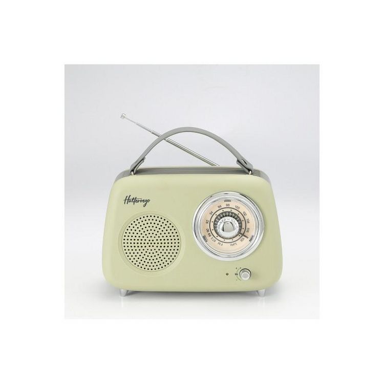 Radio Halterrego Enceinte Radio retro RMS 5W, Bluetooth, Radio FM, lecteur USB, Aux IN, Batterie rechargeable, vert olive