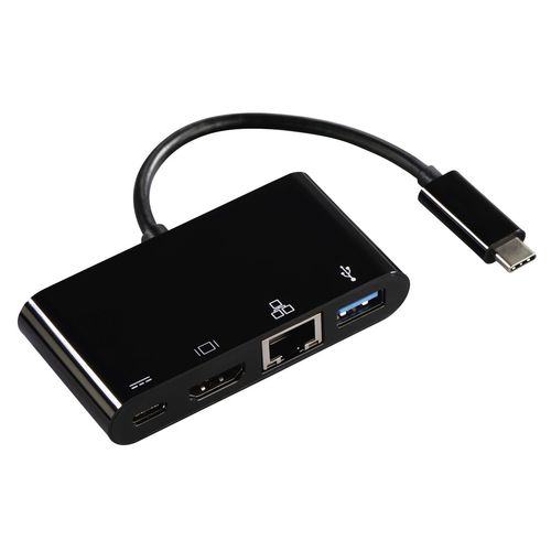 Adaptateur Multi USB-C 4 en 1 pr USB 3.1, HDMI LAN et USB-C (don. + PD)