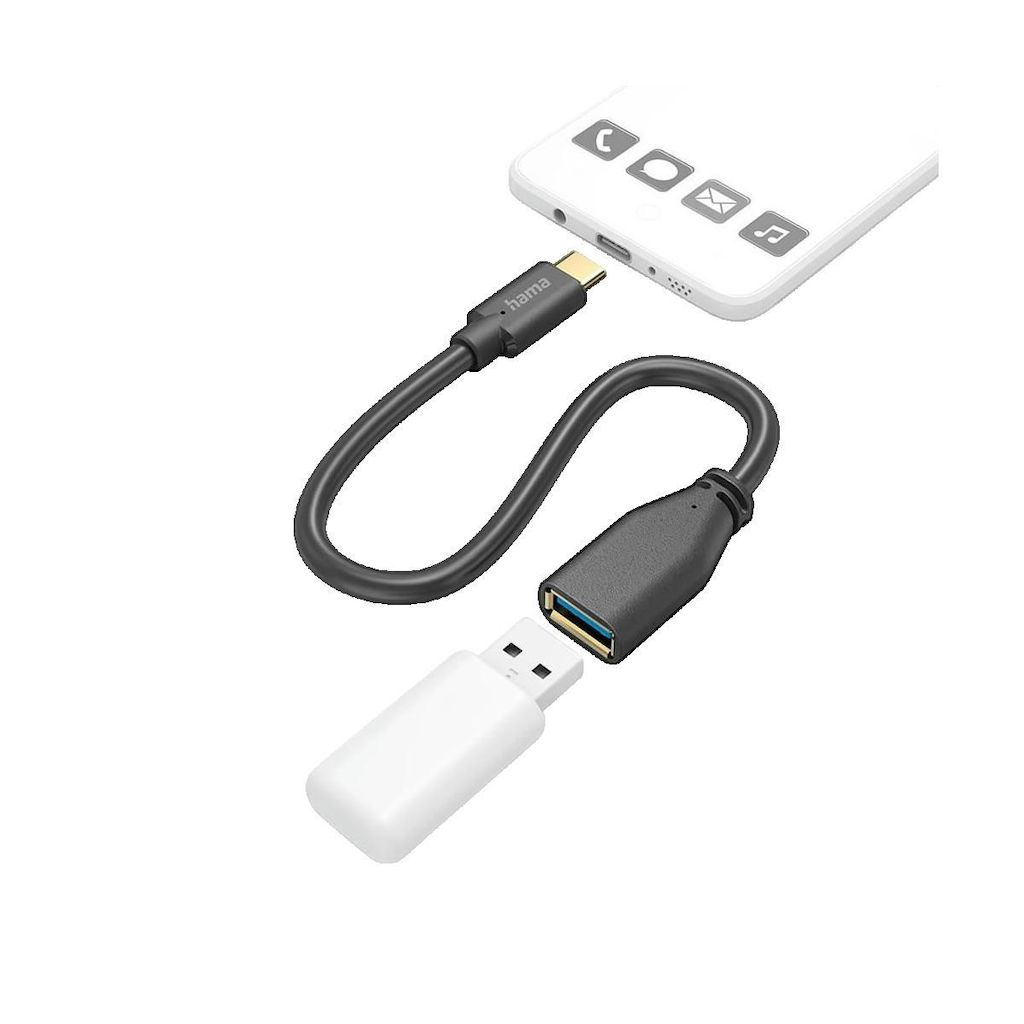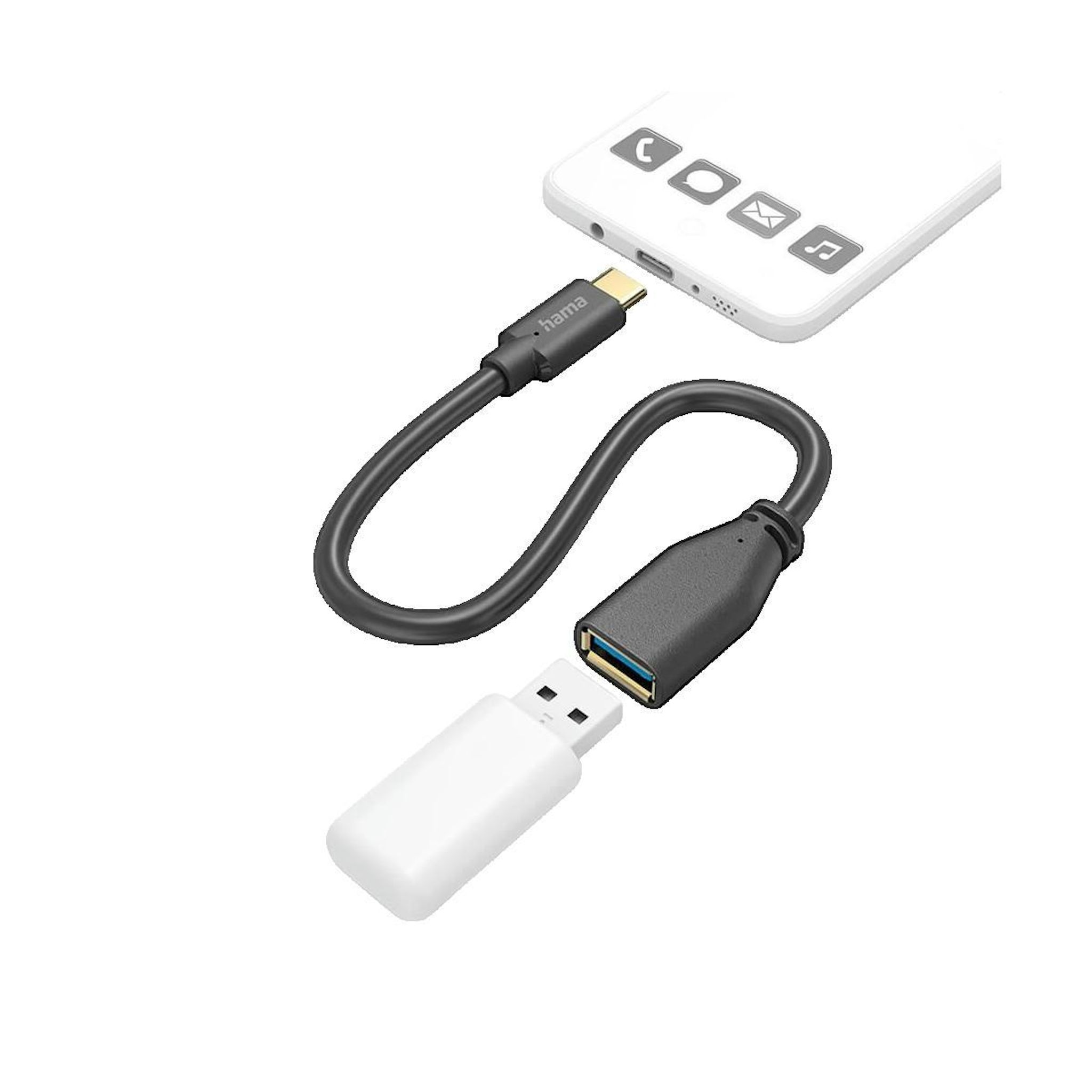 Câble adaptateur USB Hama 00201605 USB-C mâle vers USB-A femelle, 15 cm, Noir