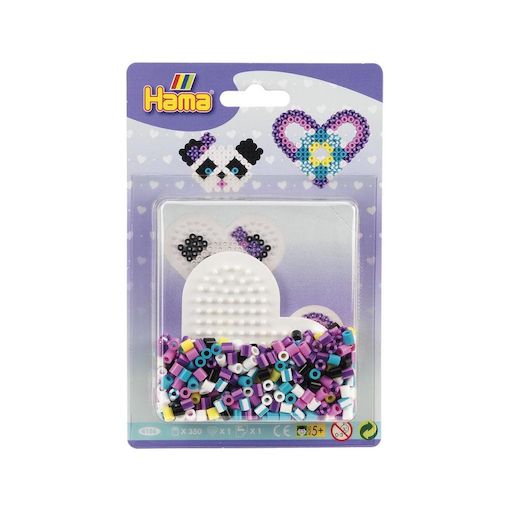 Un panda rempli de tendresse !. Retrouvez dans ce petit coffret 1 petite plaque coeur , 350 perles Hama Midi et le papier à repasser. Pour jouer, rien de plus simple :. 1) Poser les perles sur la plaque. 2) Couvrir le motif avec le papier à repasser puis repasser au fer très chaud sans vapeur. Le re