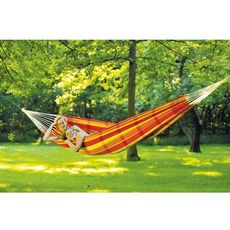 Confortablement installé à l'ombre d'un arbre, votre hamac double BARBADOS Papaya vous accompagnera pendant de nombreuses saisons grâce à son tissu épais 400 g/m². Ce modèle BARBADOS est un véritable hamac artisanal brésilien, conçu dans le but de fournir le meilleur rapport qualité / prix. Grâce à sa large surface de couchage (230 x 150 cm), vous serez installer confortablement et trouverez votre équilibre aisément.