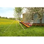 Avec une surface de couchage de 230 x 150 cm, ce hamac supporte jusqu'à 200kg.