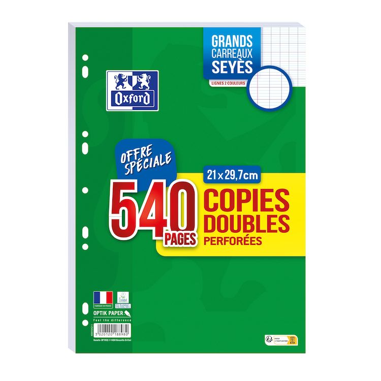 Copies Doubles perforées x540 pages Oxford Seyes 90g