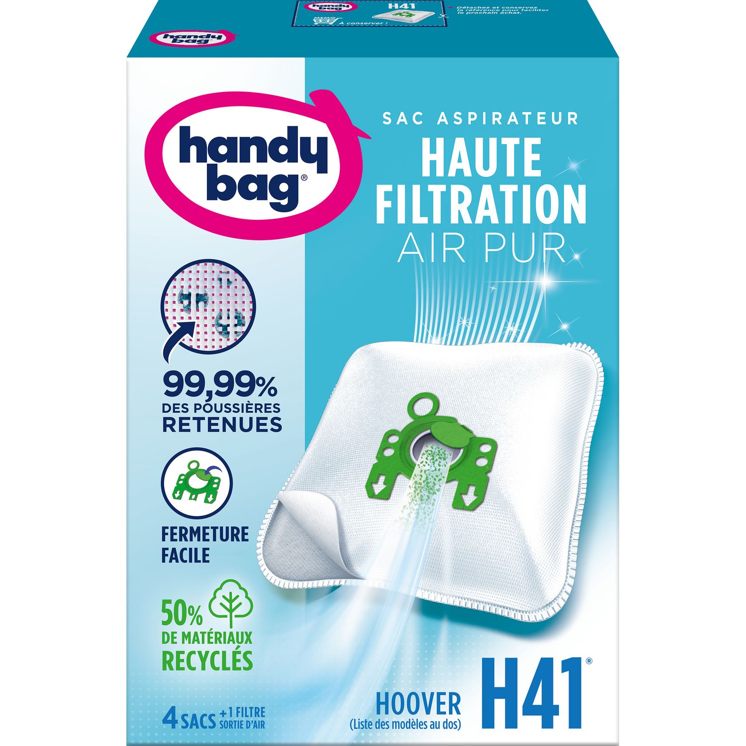 Sacs Aspirateurs H41 - Hoover - 4 sacs + 1 filtre sortie d'air à découper
