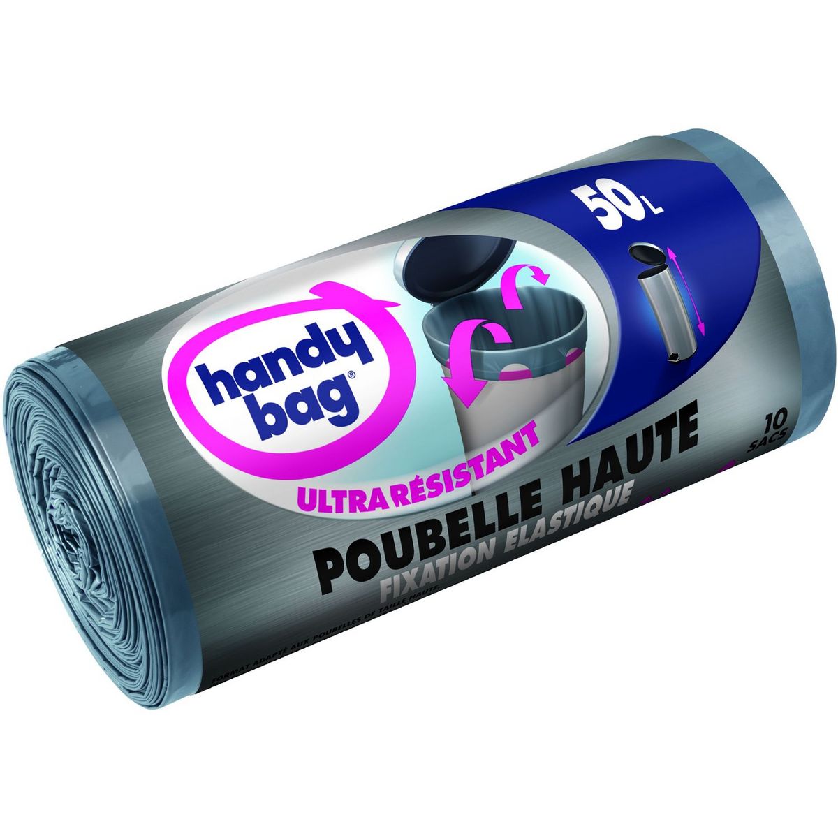 HANDY BAG sacs pour POUBELLE HAUTE FIXATION ELASTIQUE à poignées coulissantes 50 L