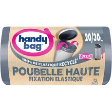 Nous utilisons les sacs Handy Bag à fixation élastique pour notre poubelle haute depuis des années car ce sont les plus costauds et ne craquent pas. Depuis quelques mois la marque les a changé pour faire les mêmes en version recyclée. Ils sont moins costauds du coup et sont plus chers. Mais bon ils sont mieux que les marques de distributeurs