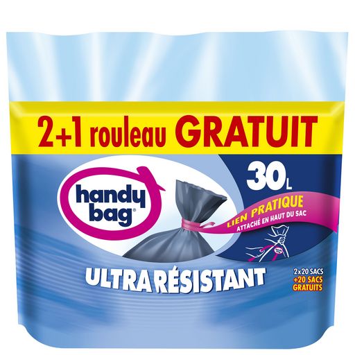 HANDY BAG SAC POUBELLE LIEN PRATIQUE ULTRA-RESISTANT 30L LOT DE 3 (2+1 GRATUIT)