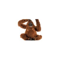 Peluche Géante d'un Orang Outang. Cet Orang Outang en peluche géante est issu de la collection d'animaux en peluche Anima . Cette peluche exceptionnelle est très réaliste jusque dans les détails. Elle constituera une magnifique décoration pour un thème jungle. Cet orang autan n'attend que des câlins. La peluche mesure 90 cm de hauteur. Rembourrées à l'aide des fibres recyclées, les peluches allient finitions d'exception et réalisme surprenant. La peluche Anima Hansa est synonyme d'excellence. Anatomie, pelage ou plumage, regard? chaque animal est reproduit à la perfection.